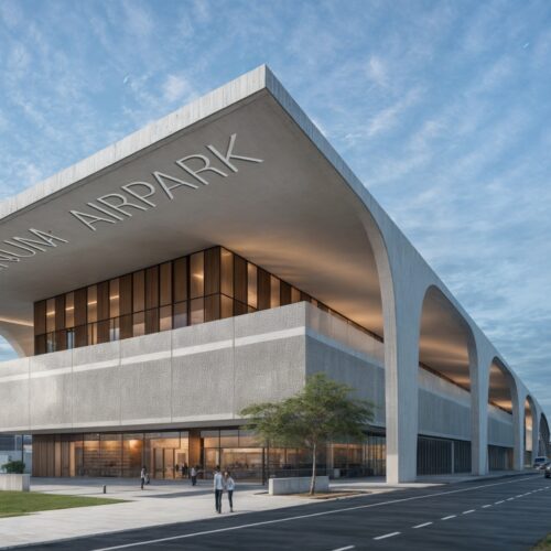 Elemento distintivo del progetto è l’“Air Park”, una copertura verde accessibile che trasforma il parcheggio in un paesaggio pubblico stratificato direttamente connesso al terminal. Questo dispositivo estende l’esperienza aeroportuale oltre i suoi confini funzionali, instaurando un dialogo continuo spaziale e visivo con la città.