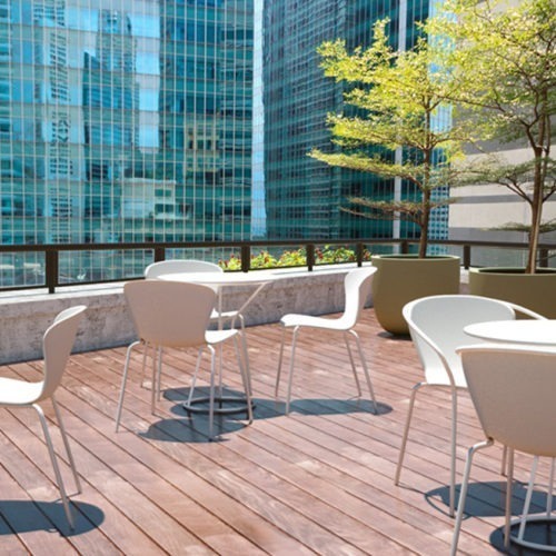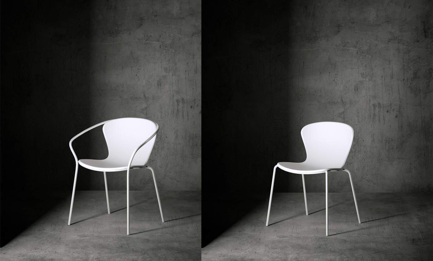Solea, sedia versatile e accattivante ispirata allo stile viennese ottocentesco, è realizzata con seduta in plastica e struttura in metallo; con e senza braccioli e con basamenti diversi, è corredata da una serie di tavoli di misure diverse.