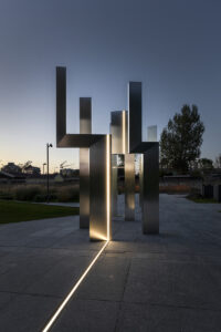 Il progetto interpreta la rigenerazione come processo ambientale, economico e sociale. L’architettura si distingue per facciate contemporanee con alternanza vetro-opaco e superfici metalliche cangianti, attraversate dal “segno” luminoso: una linea di luce continua che unisce edifici e piazze, diventa elemento identitario e ricuce l’intervento al contesto urbano.