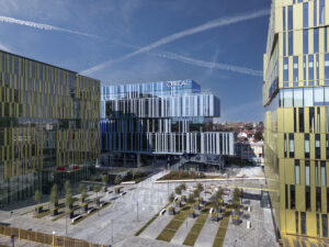 Il masterplan comprende quattro edifici direzionali e due piazze, configurando una nuova centralità urbana capace di integrare spazi di lavoro, aree verdi e luoghi pubblici e affermandosi come modello nazionale di rigenerazione urbana sostenibile.