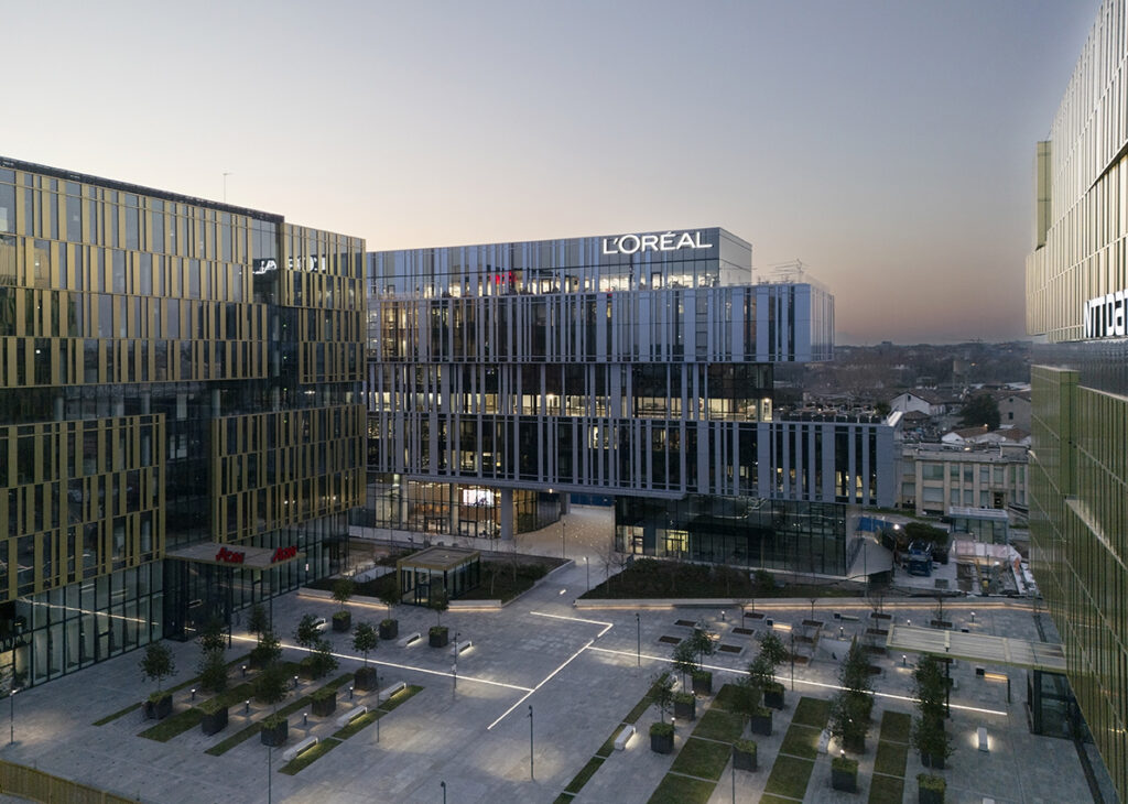 Gli edifici sono progettati secondo il metodo InsideOut, ponendo al centro il benessere delle persone. Gli spazi ospitano spazi flessibili e tecnologicamente avanzati, ambienti collaborativi, aree ibride e terrazze panoramiche. Il complesso accoglie oggi realtà internazionali come NTT Data, Aon e il Beauty Hub di L’Oréal Italia, confermando come qualità architettonica, sostenibilità e standard ESG siano driver decisivi per l’attrattività immobiliare a Milano.